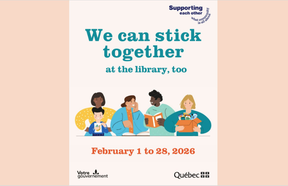 From February 1 to 28, 2026, the Reginald J.P. Dawson Library will participate in the provincial initiative “We can stick together at the library, too!”, organized by the Ministry of Employment and Social Solidarity in collaboration with the Quebec Public Library Association (ABPQ).