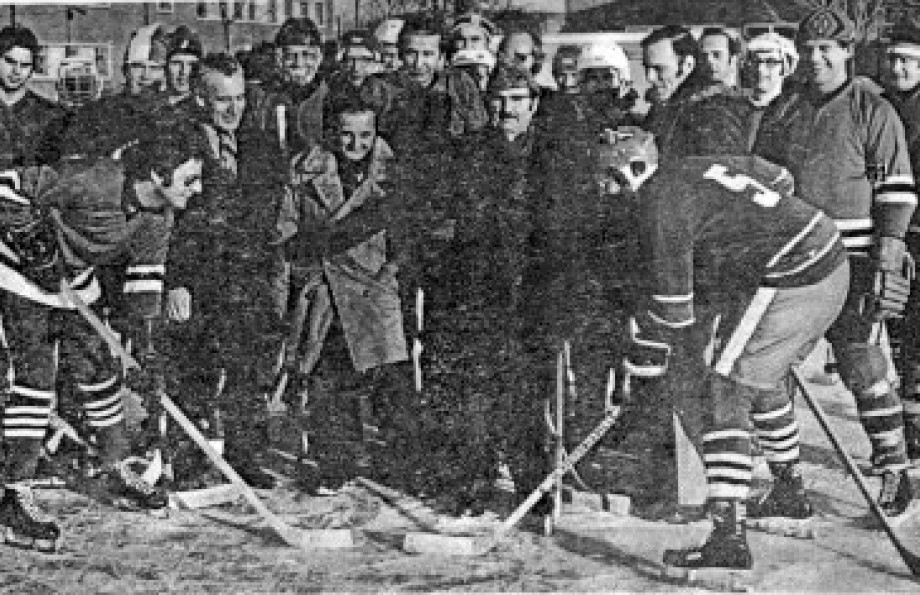 Sur la photo, le tout premier comité exécutif de la ligue, composé de Nick Timeotheatos (président), Richard Shatilla, Gerald Murphy ainsi que John Labute. On y distingue également au centre, le maire Reginald Dawson prêt à faire la mise au jeu protocolaire.